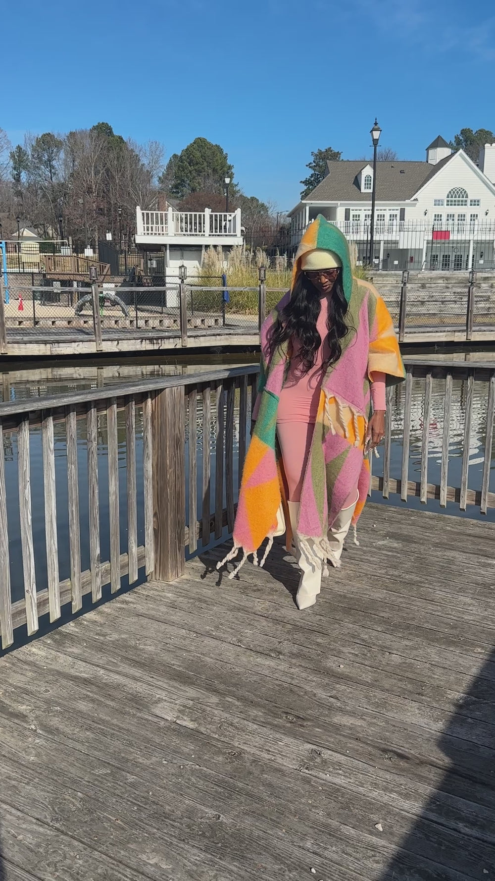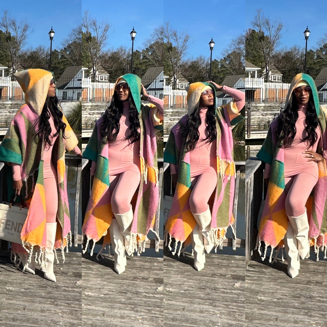 Hooded Winter Open Front Poncho