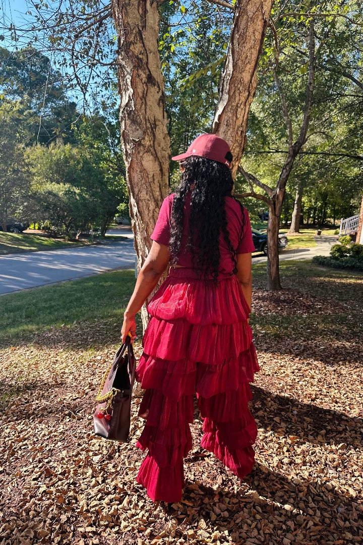 LUXE All the Vibes Bubble hem layered pants - Burgundy
