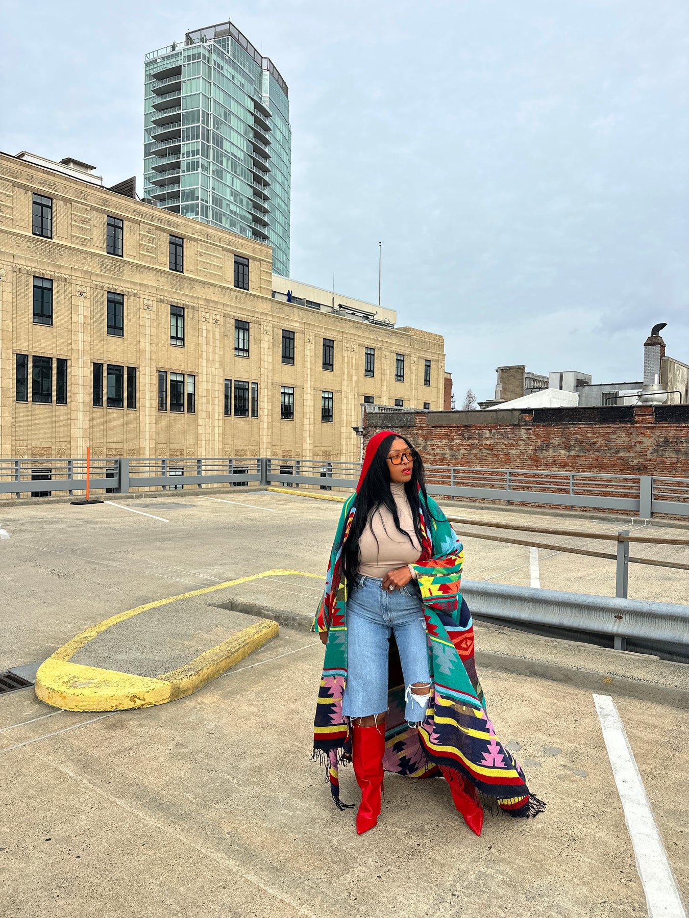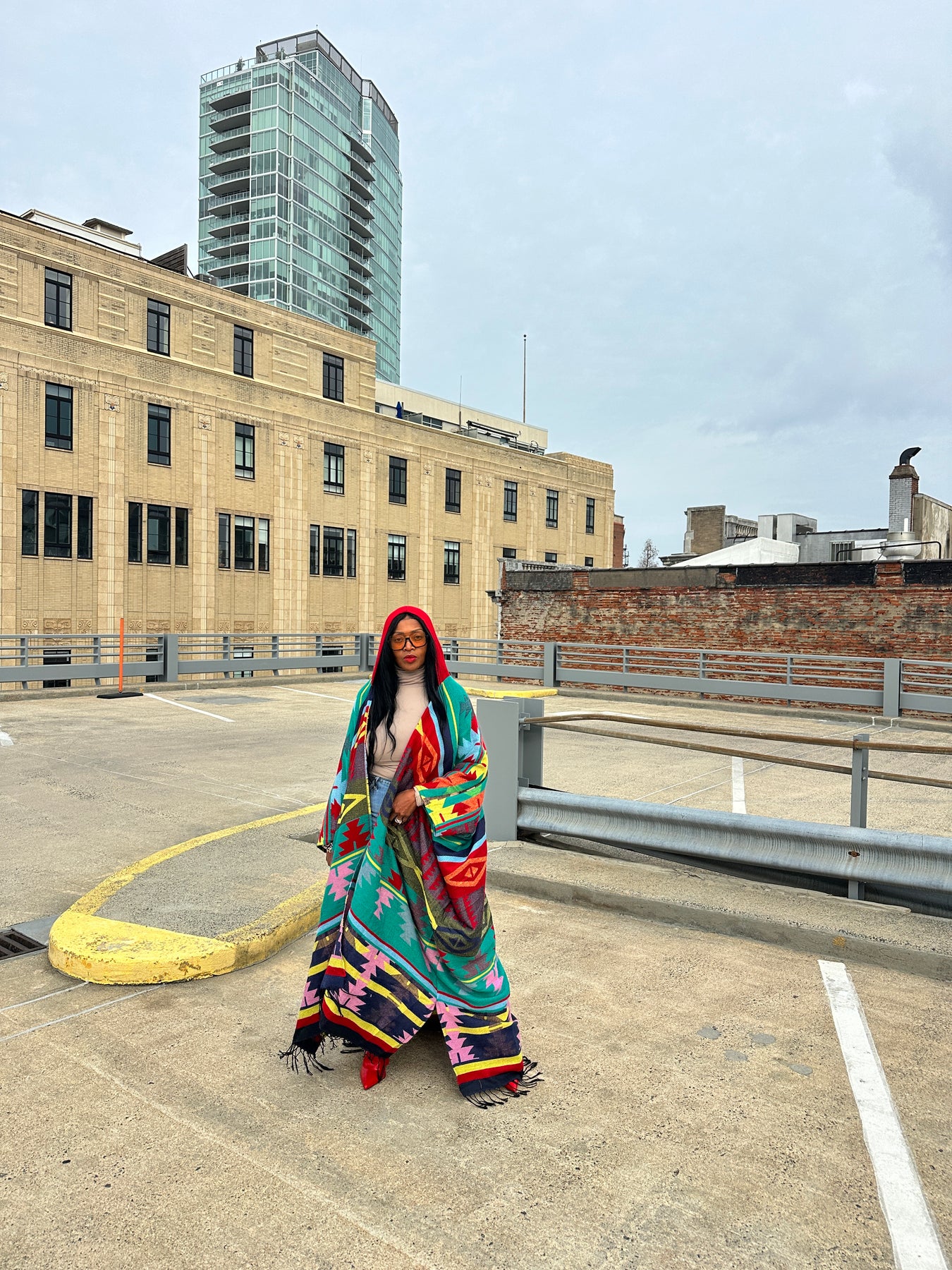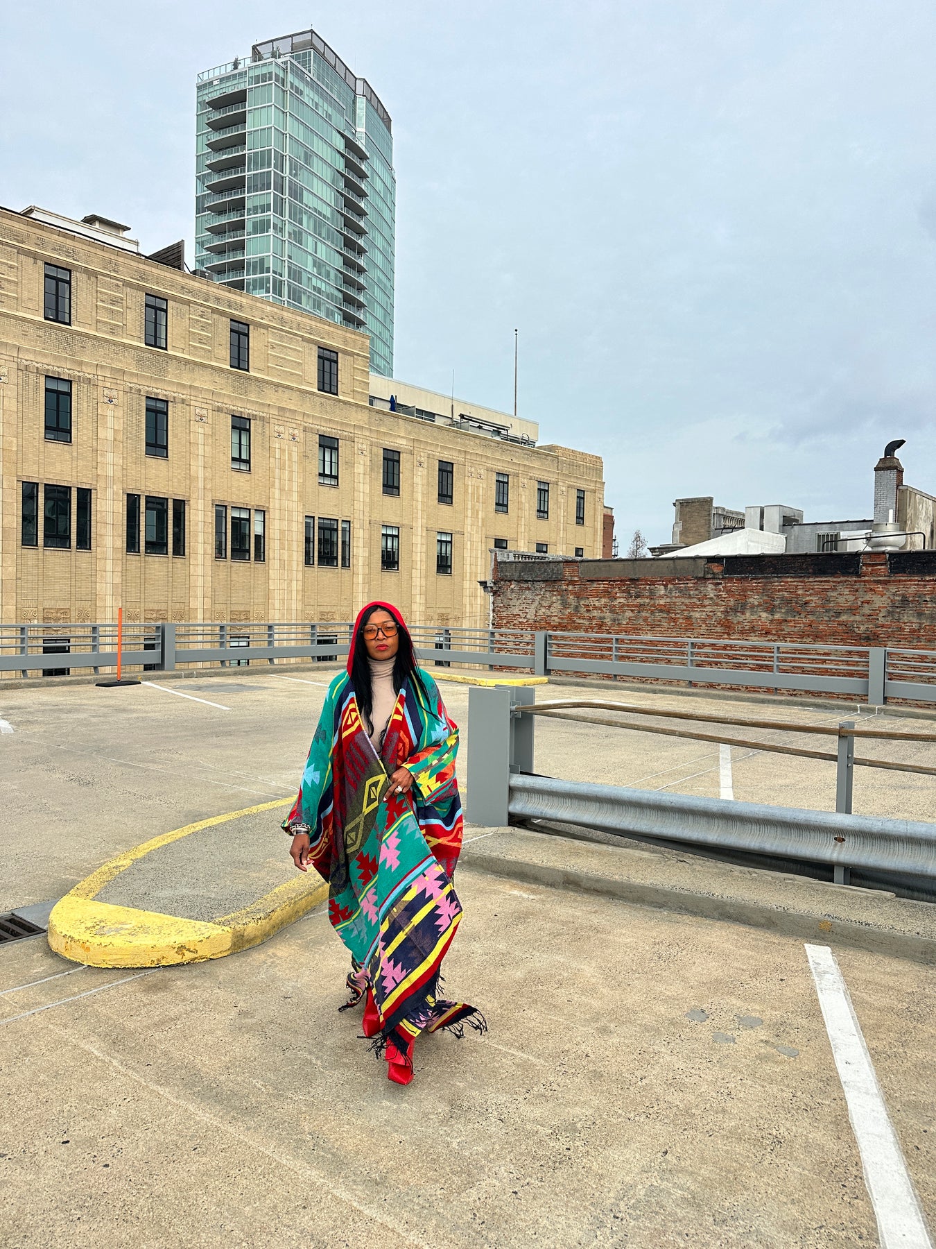 Rich Auntie at it's finest! Our fashion winter long hooded kimono is a fun, colorful and flowy kimono. Open front styling , bold print and hood makes this a statement piece you will want in your closet.  One Size fits up to 4X as the sleeves are open flowy and the poncho has an open front.