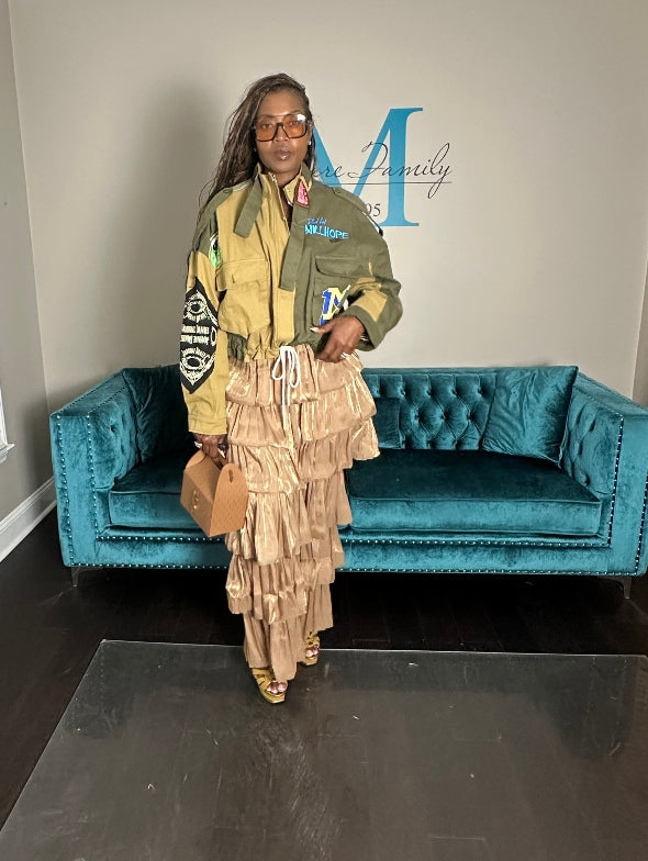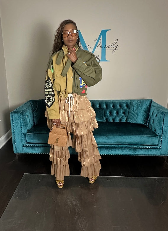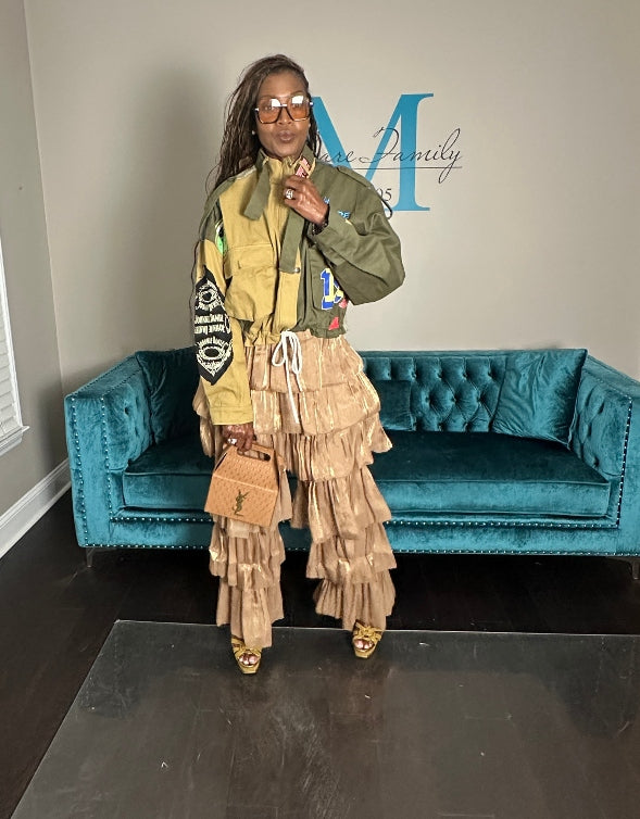 Elevate your wardrobe with this statement-making Denim x Cargo Patch jacket that combines bold utility with everyday versatility. Intricate patch work adorns the front and sleeves while a soft denim knit back ensures comfort and style. Layer it as a shirt, wear it as a jacket, or cinch the waist for a flattering silhouette—the choice is yours. Style it on or off the shoulder for that coveted relaxed, effortless vibe.