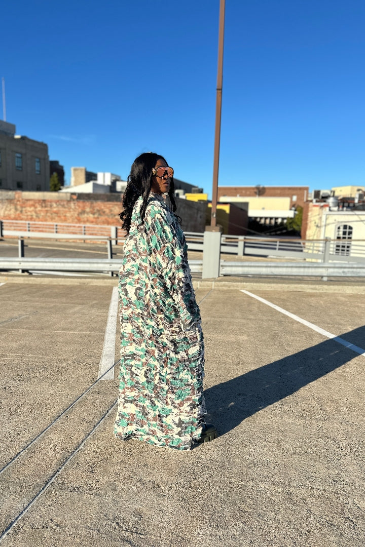 Denim will ALWAYS be a vibe and this long duster cardigan does not disappoint! Cut slits throughout this flowy statement piece that has multiple styling options to give you an edge! In One Size fits up to 4X as the sleeves are open flowy with an open front.