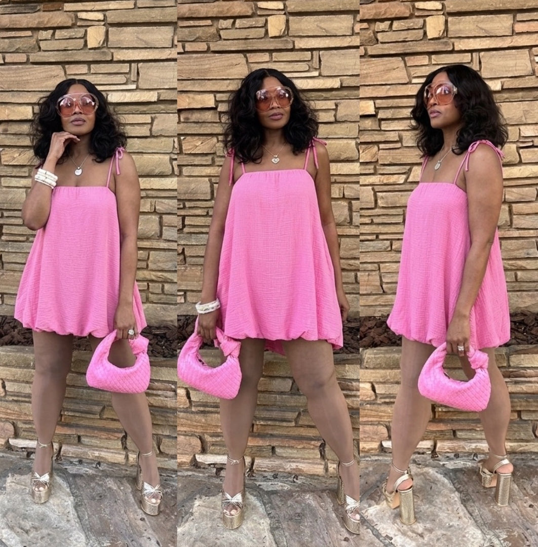 Spring Bloom Bubble hem dress - Candy Pink