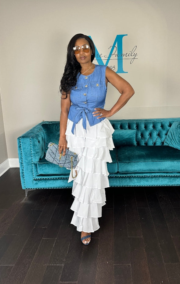 Fun...Tiered...and Fabulous! Our Nylon tiered jogger  pants bring the fashion this Summer as they command attention! Flirty tiered layers throughout, Elastic waist, Stretchy layers and adjustable ankles make these a stunner this Summer!