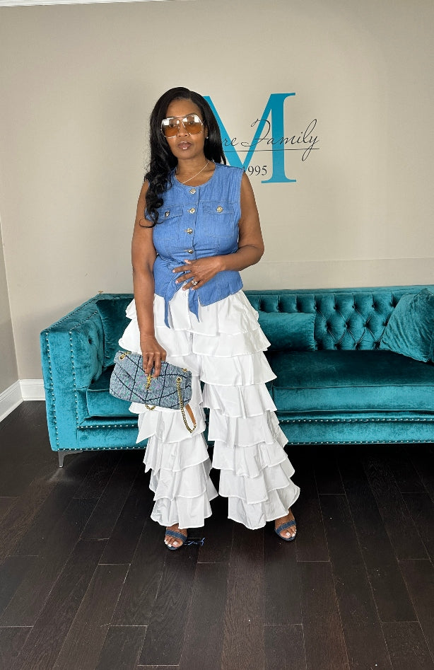 White Nylon Tiered Pants