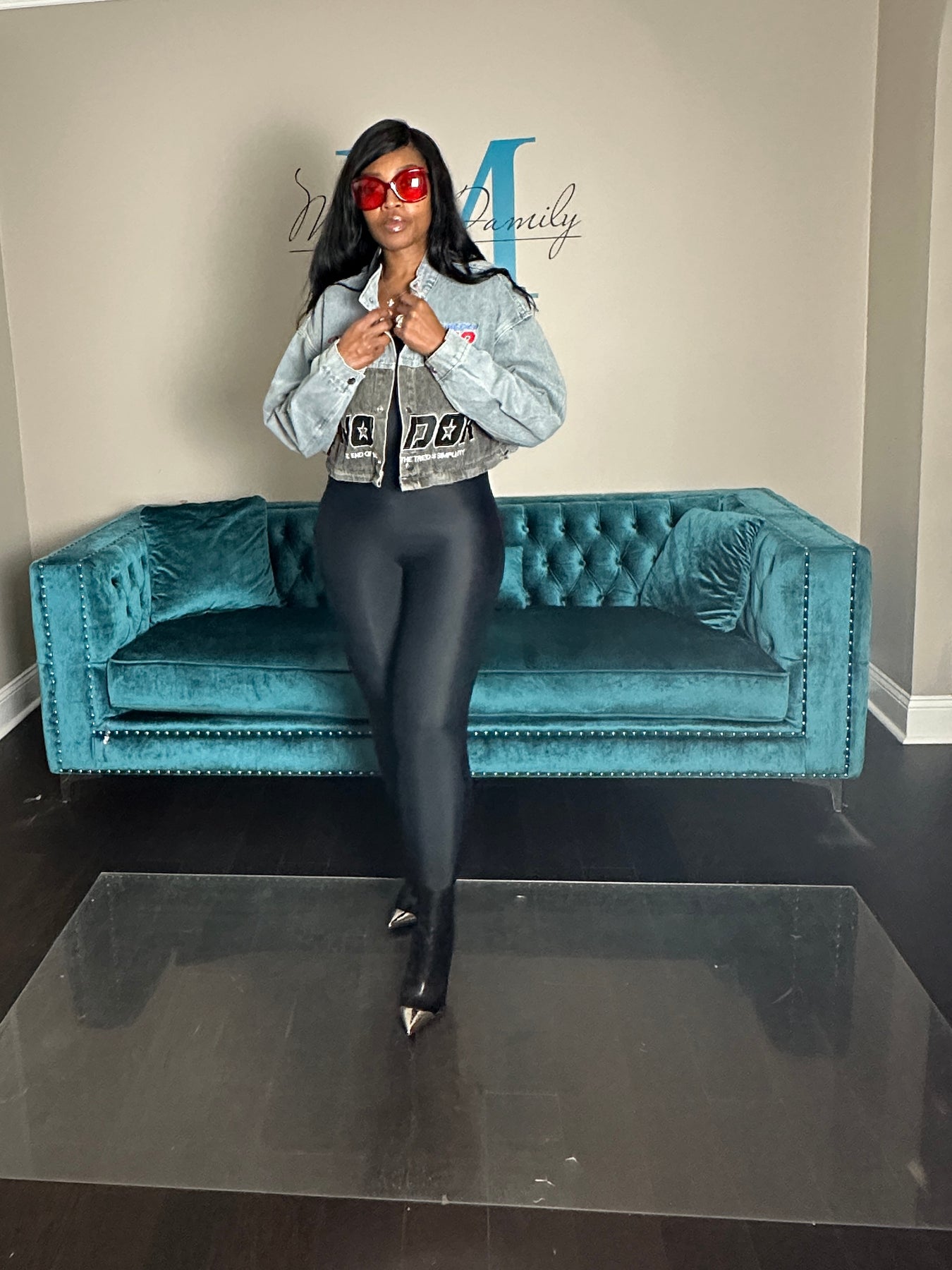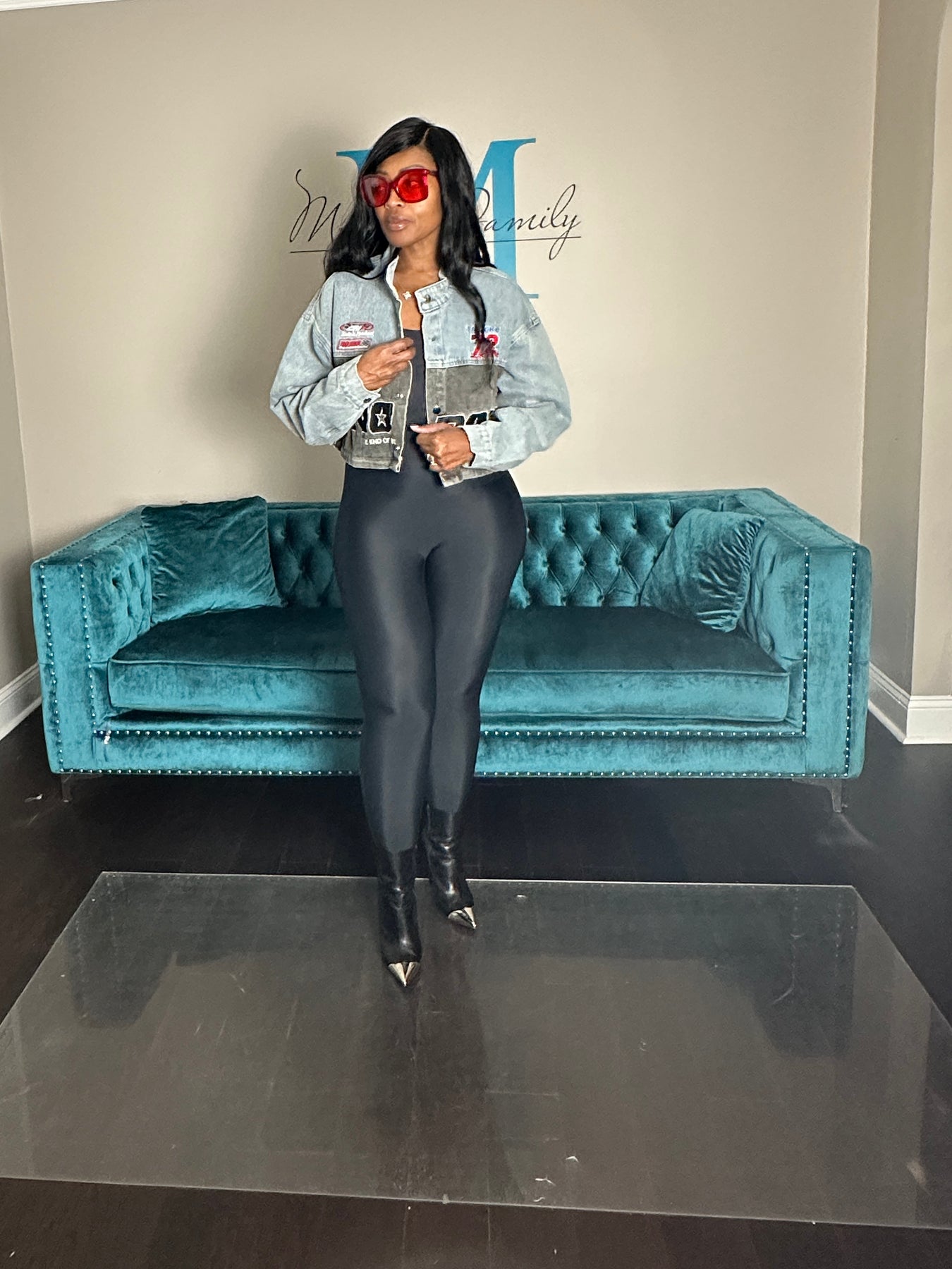 Our Blue Denim Patch jacket makes a fashion statement as it showcases the best of both worlds! Jacket can be worn long or short . Available is S-L Model is wearing a Medium as they are slightly oversized. Please refer to the size chart below:.