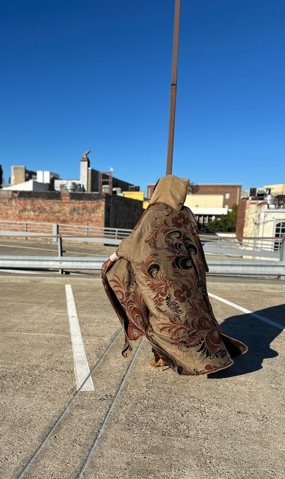 NEW Hooded Winter Open Front Poncho Coat -  Chocolate Tan Black Blend Ships 10/30